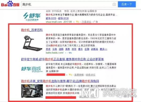 通過(guò)以上圖我們可以看見(jiàn)百度快照排名第一個(gè)是百度百科,百度百科是幫助用戶(hù)解決跑步機相關(guān)“知識”問(wèn)題的,排名第二個(gè)商城,幫助用戶(hù)解決購買(mǎi)需求的,排名第三個(gè)是做跑步機“評測”的。接下來(lái)再看如下圖所示: